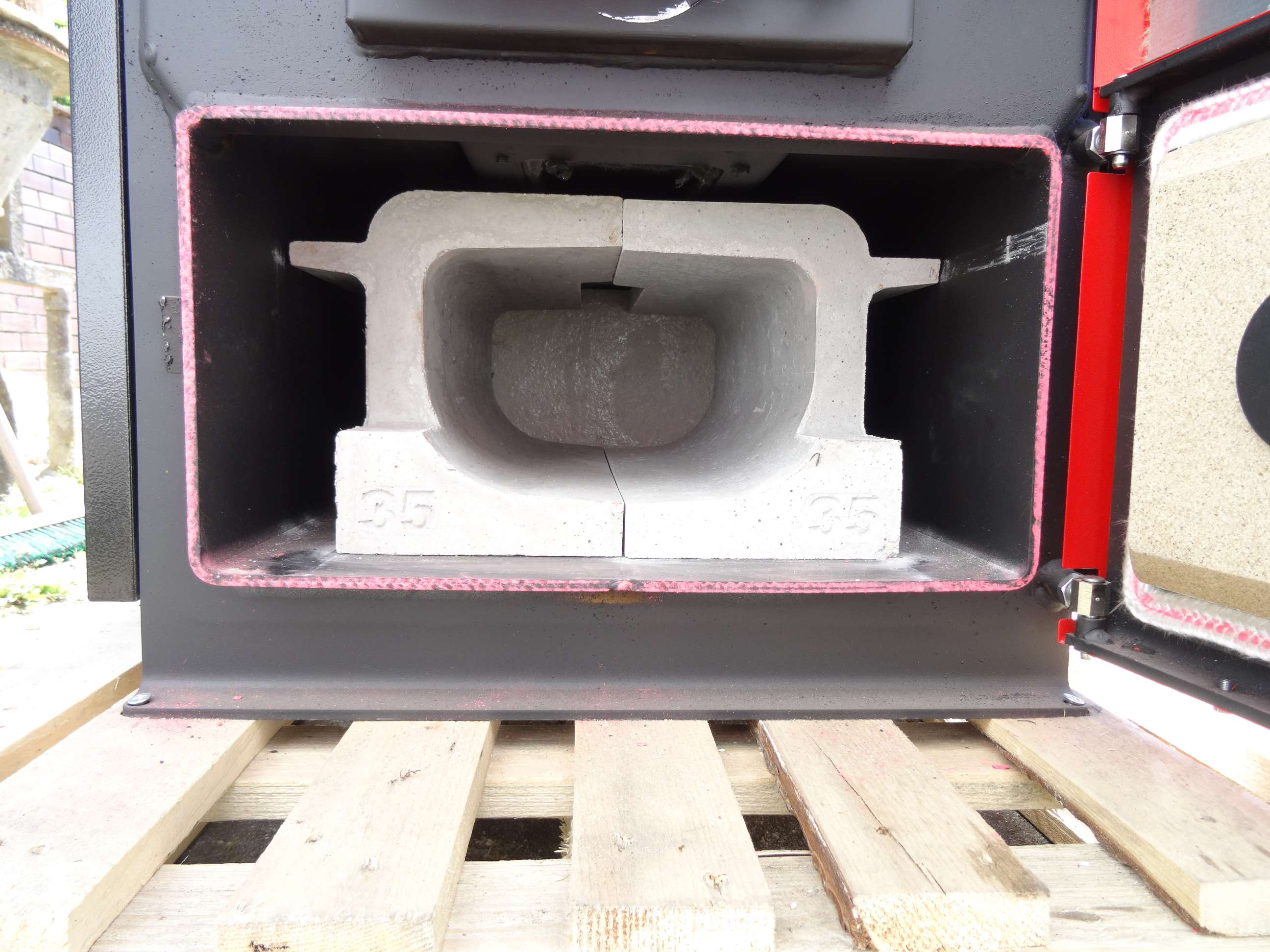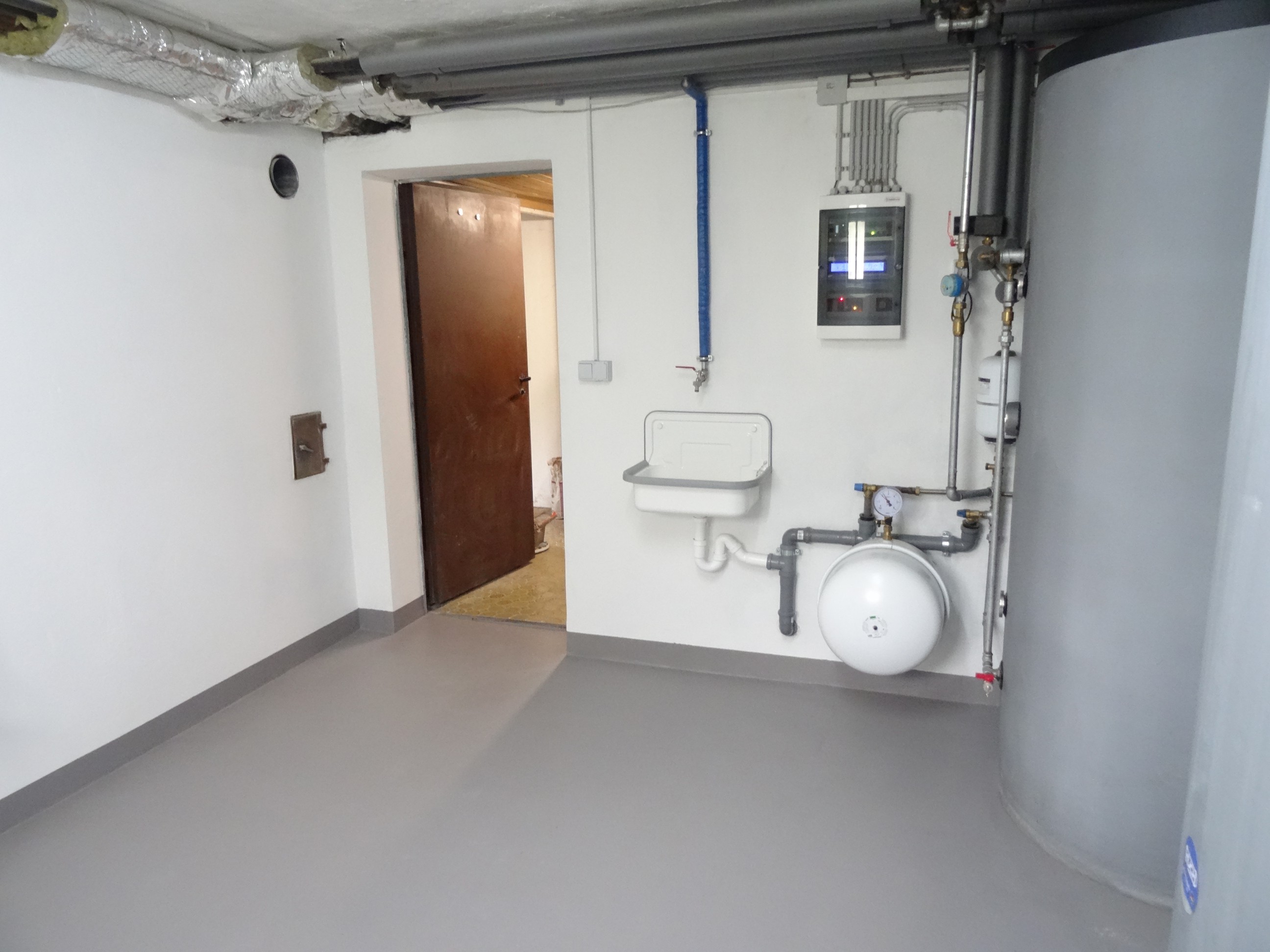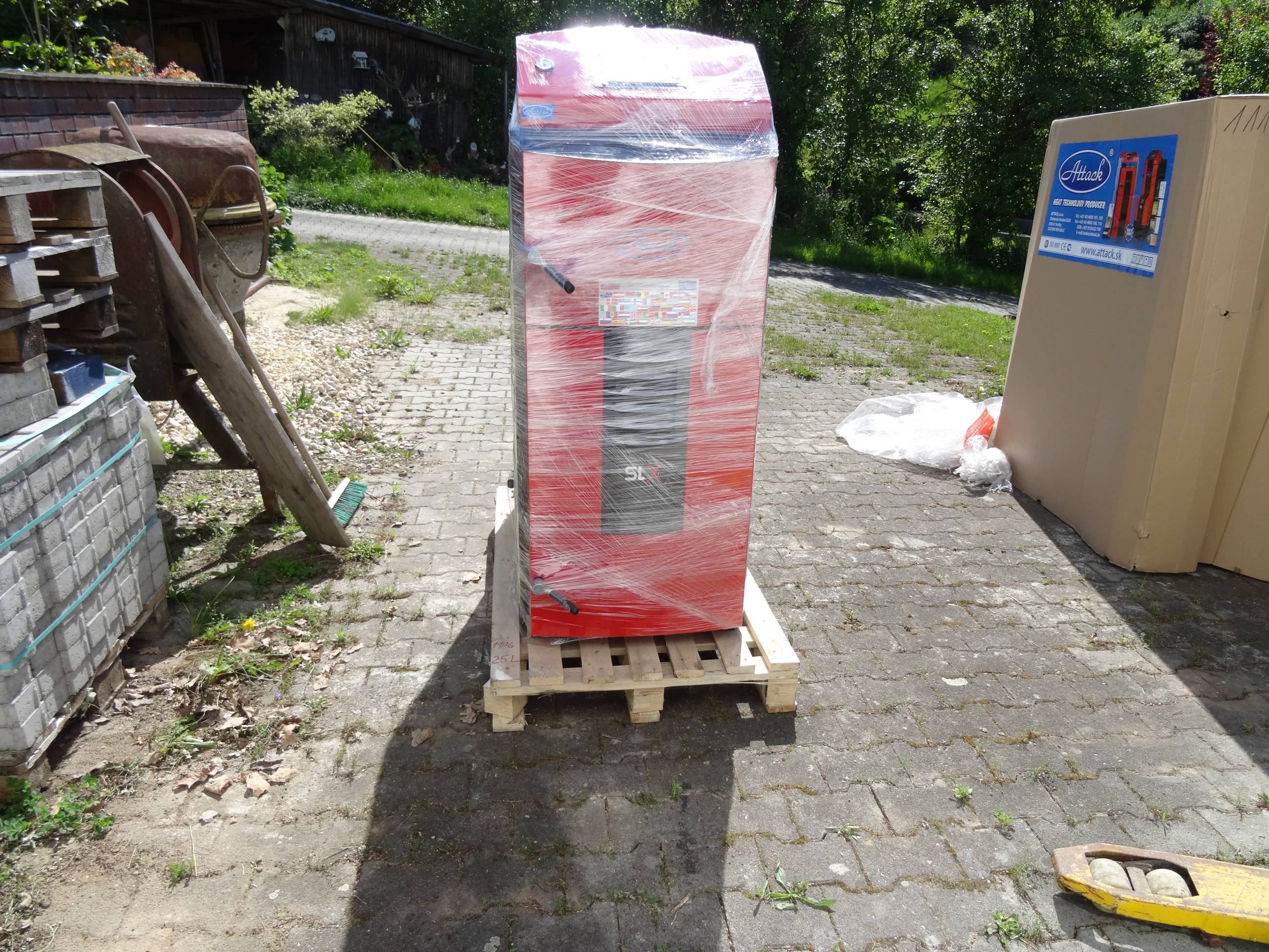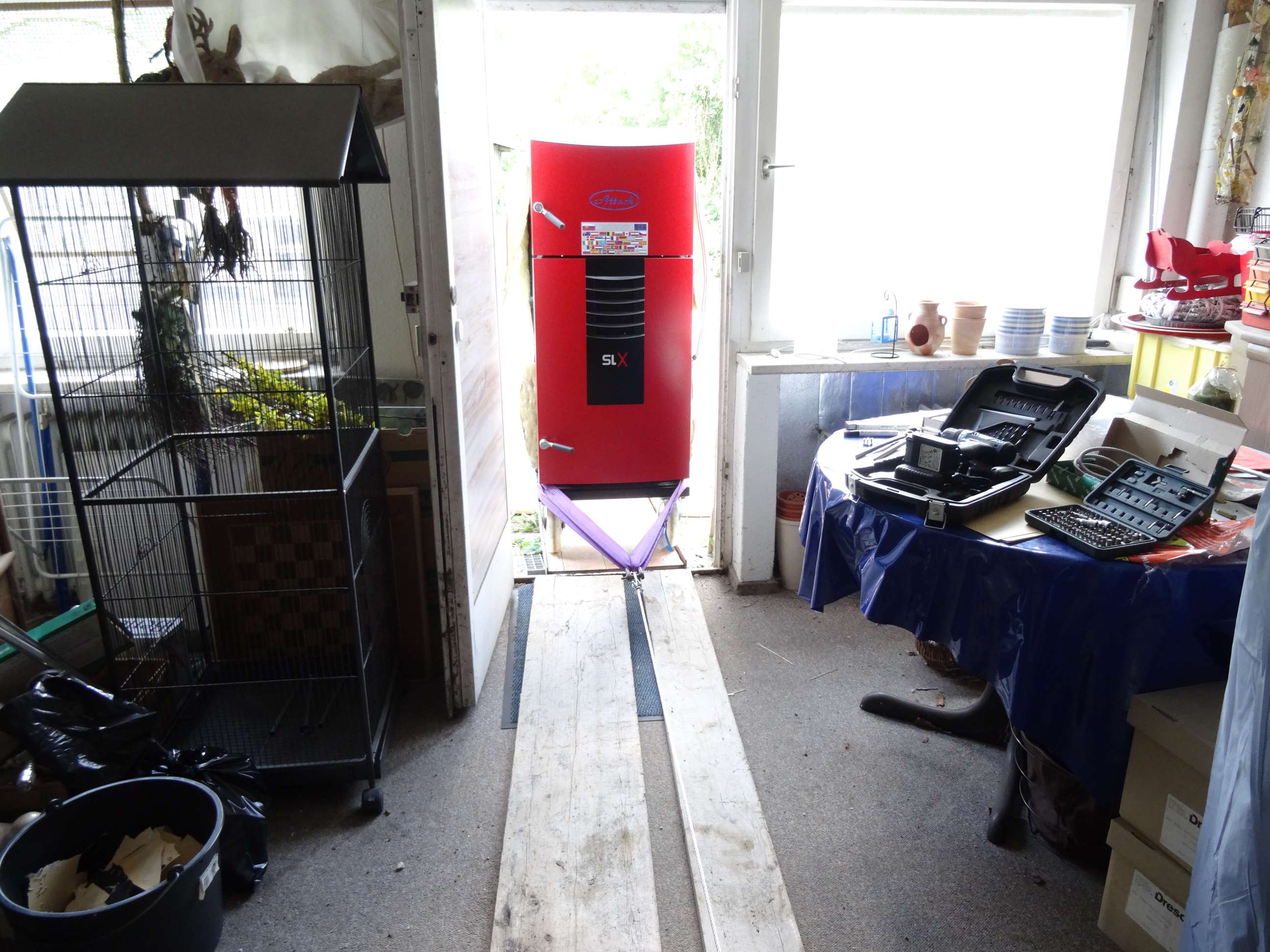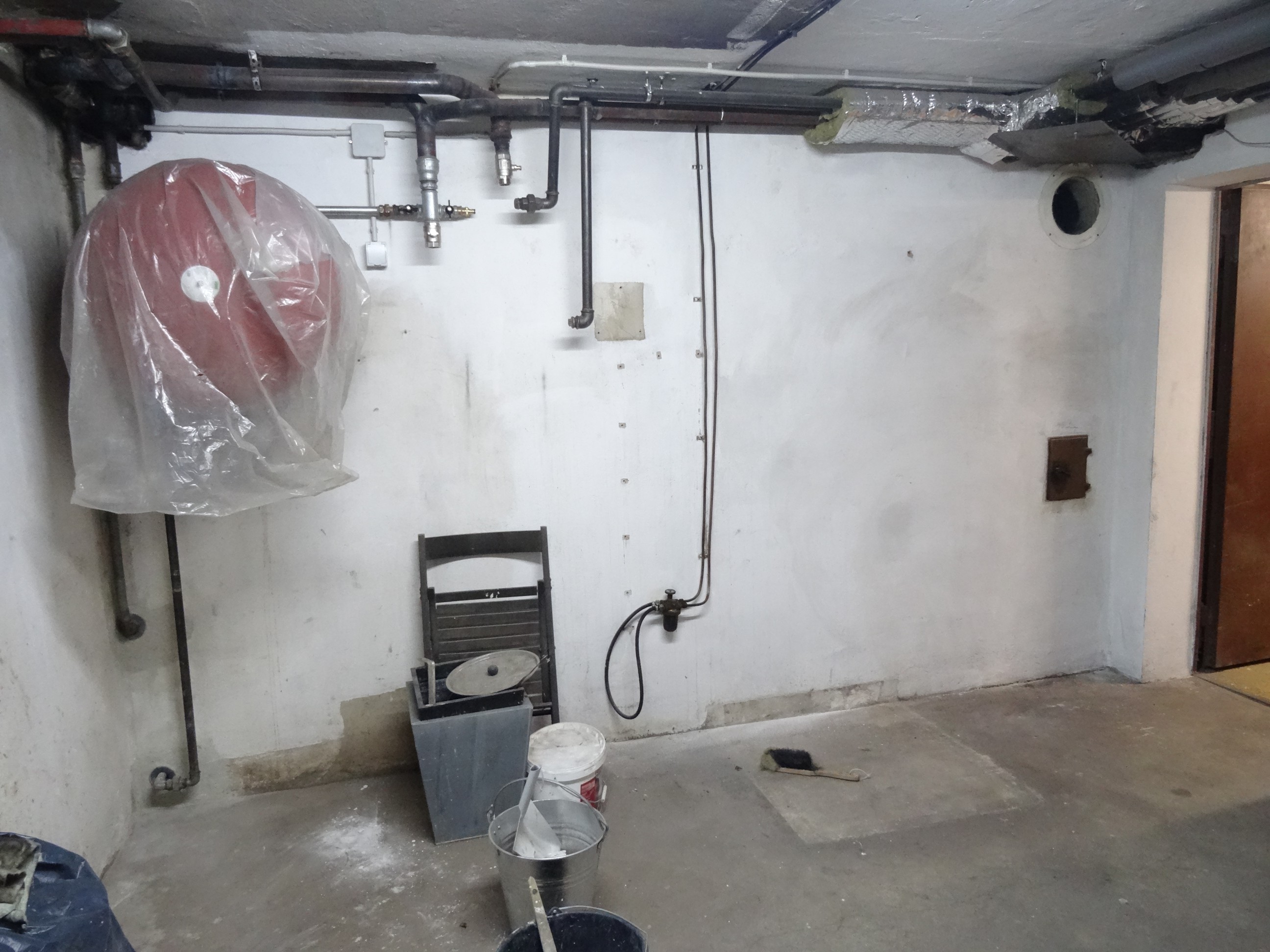 Ich schob auch einen leeren Karton mit den aussenmaßen des Kessels durch den Keller, ob der auch wirklich reinpasst.