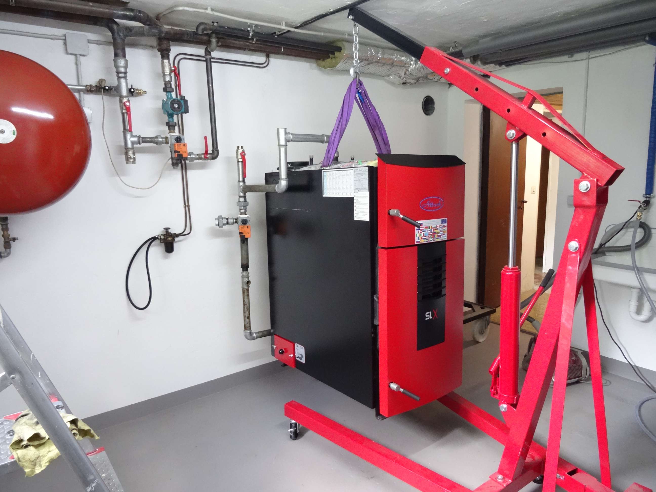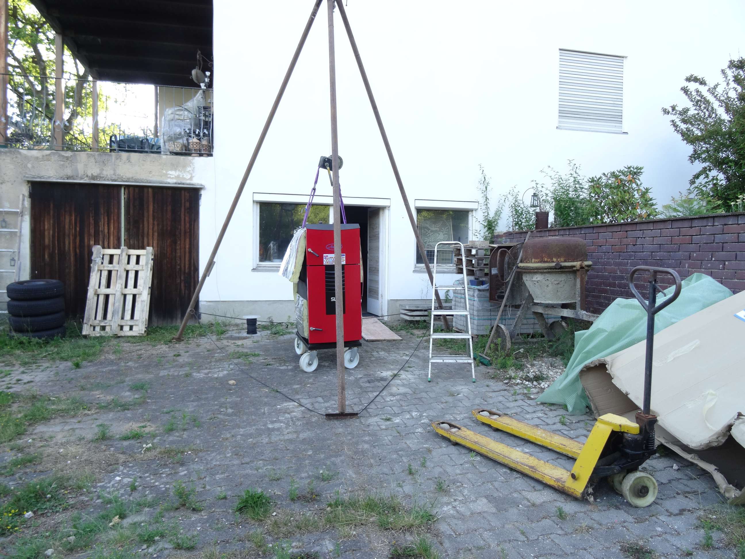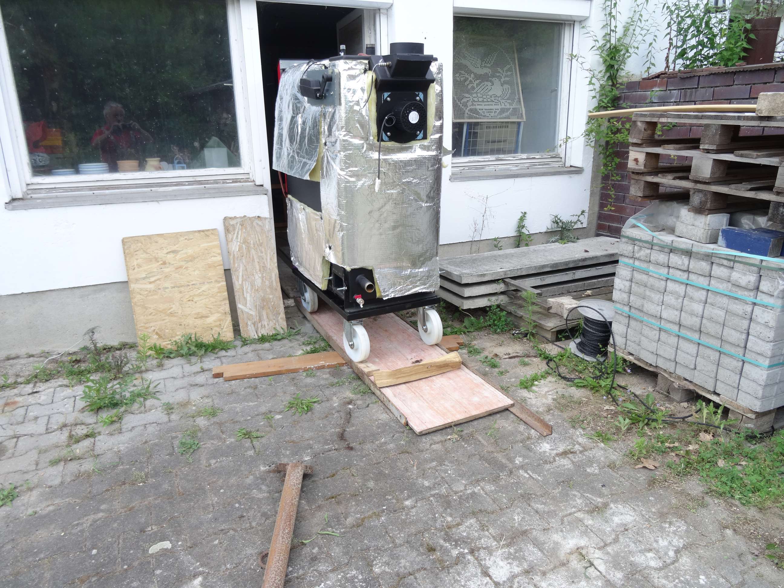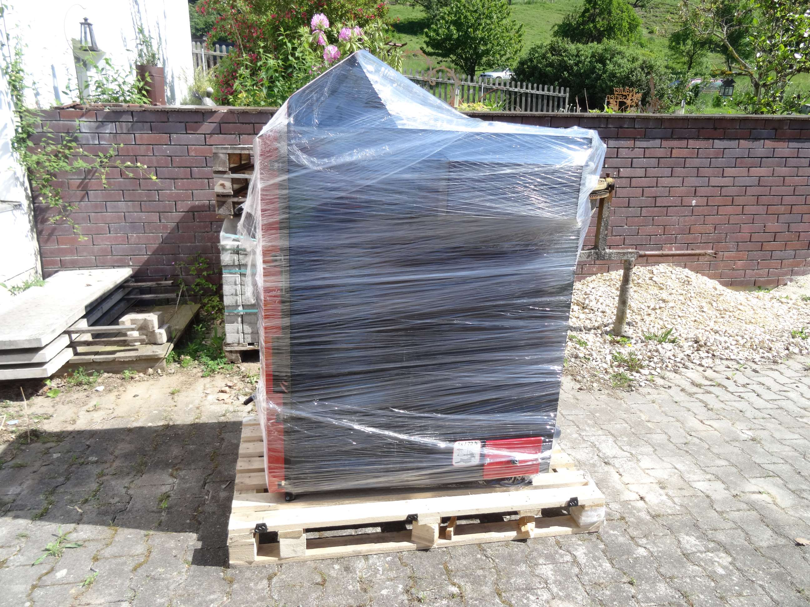 Wenn ich den rein bekommen will, brauche ich einen Wagen mit 4 Lenkrollen, sonst komm ich nicht durch den Gang zum Heizraum.