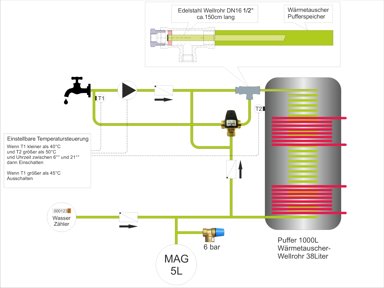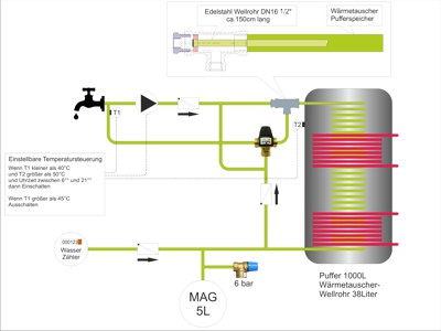 Die obere Hälfte ist für Warmwasser reserviert und kann nicht "Verheizt" werden. |