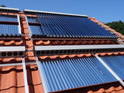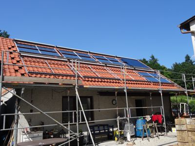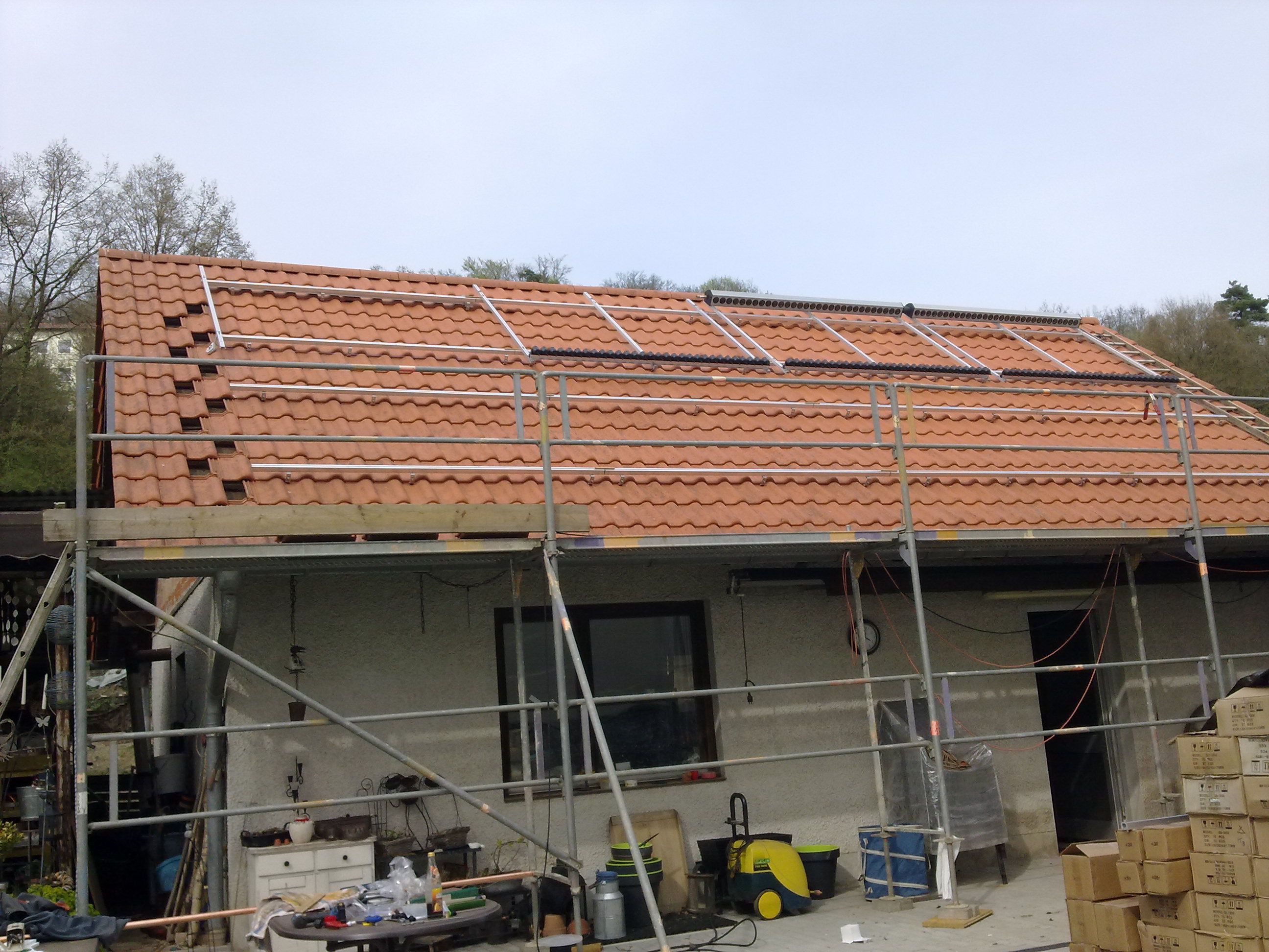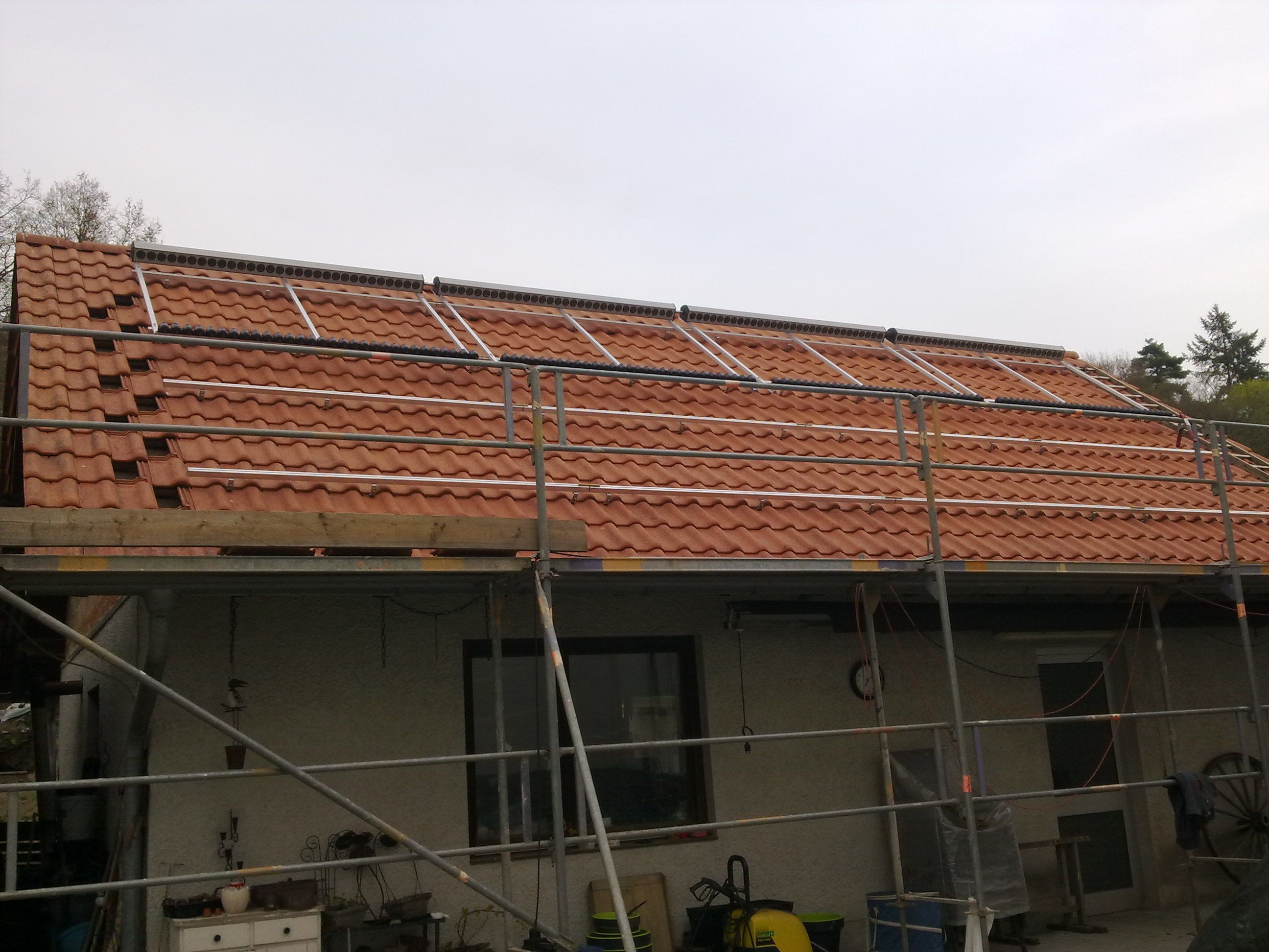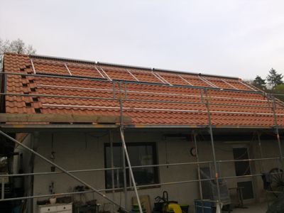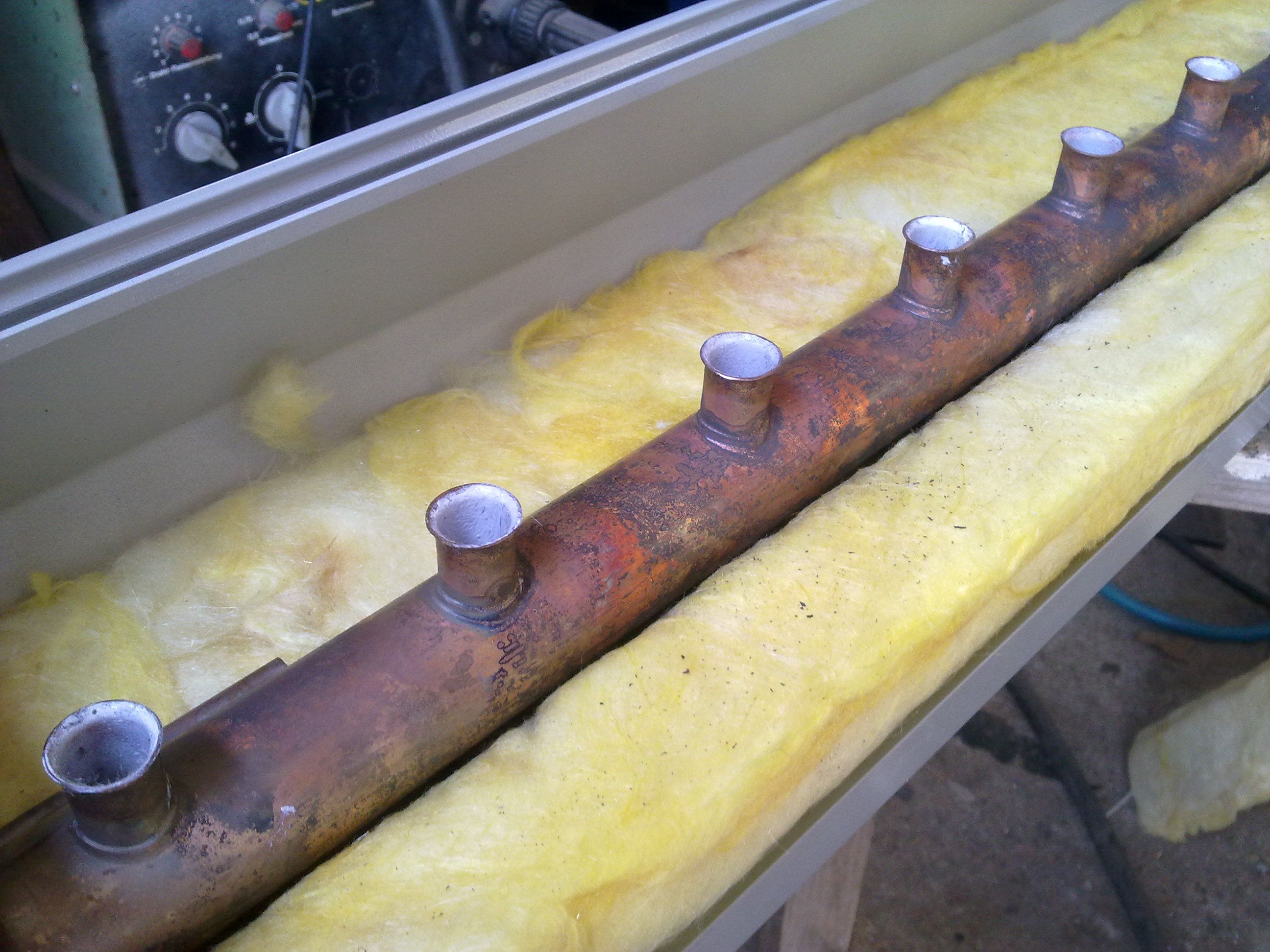 Nach Verlegung, Anschluss und Dichtheitsprüfung der Kupferrohre Ø28mm, wurde mit dem Einbau der Reflektoren und Heatpipes-Röhren begonnen. |