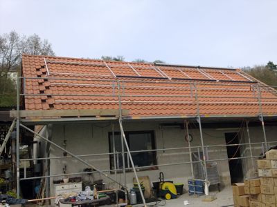 Dann begann das Dachhaken setzen. |