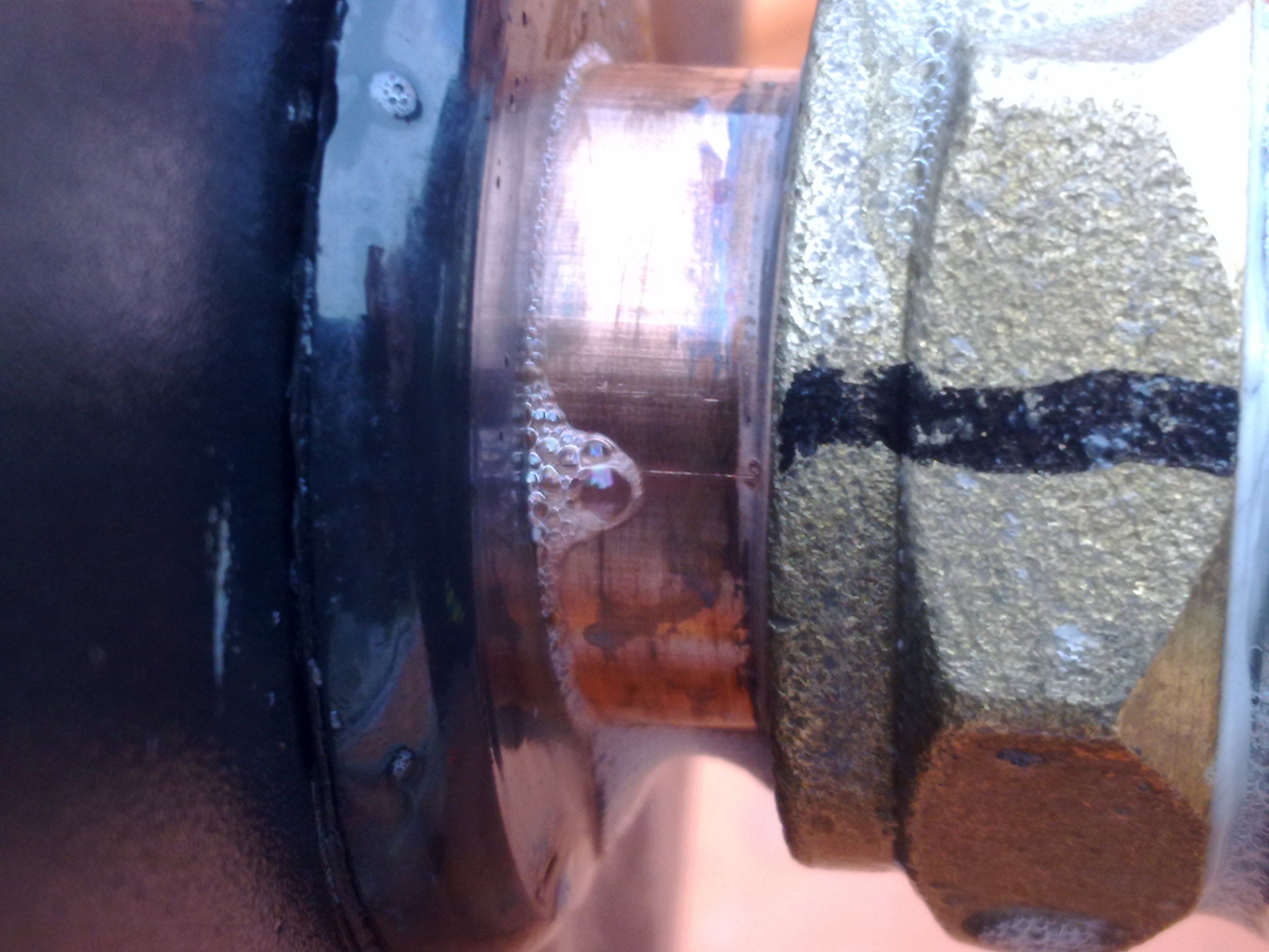 Nach Montage aller, auch der unteren vier, wurde mit Druckluft 2bar beaufschlagt. Der Druck hielt nicht. Also Lecksuche mit Seifenwasser. |