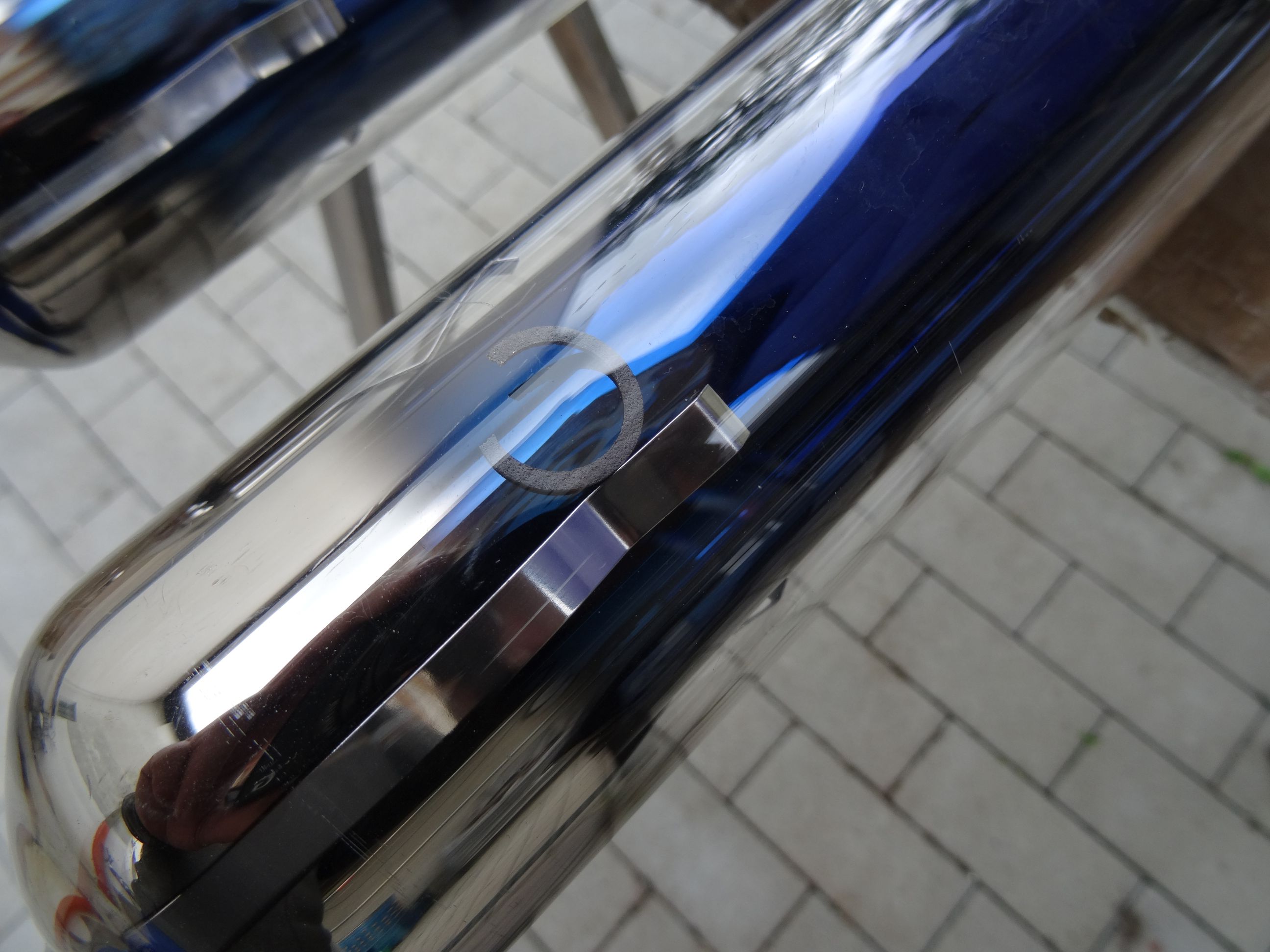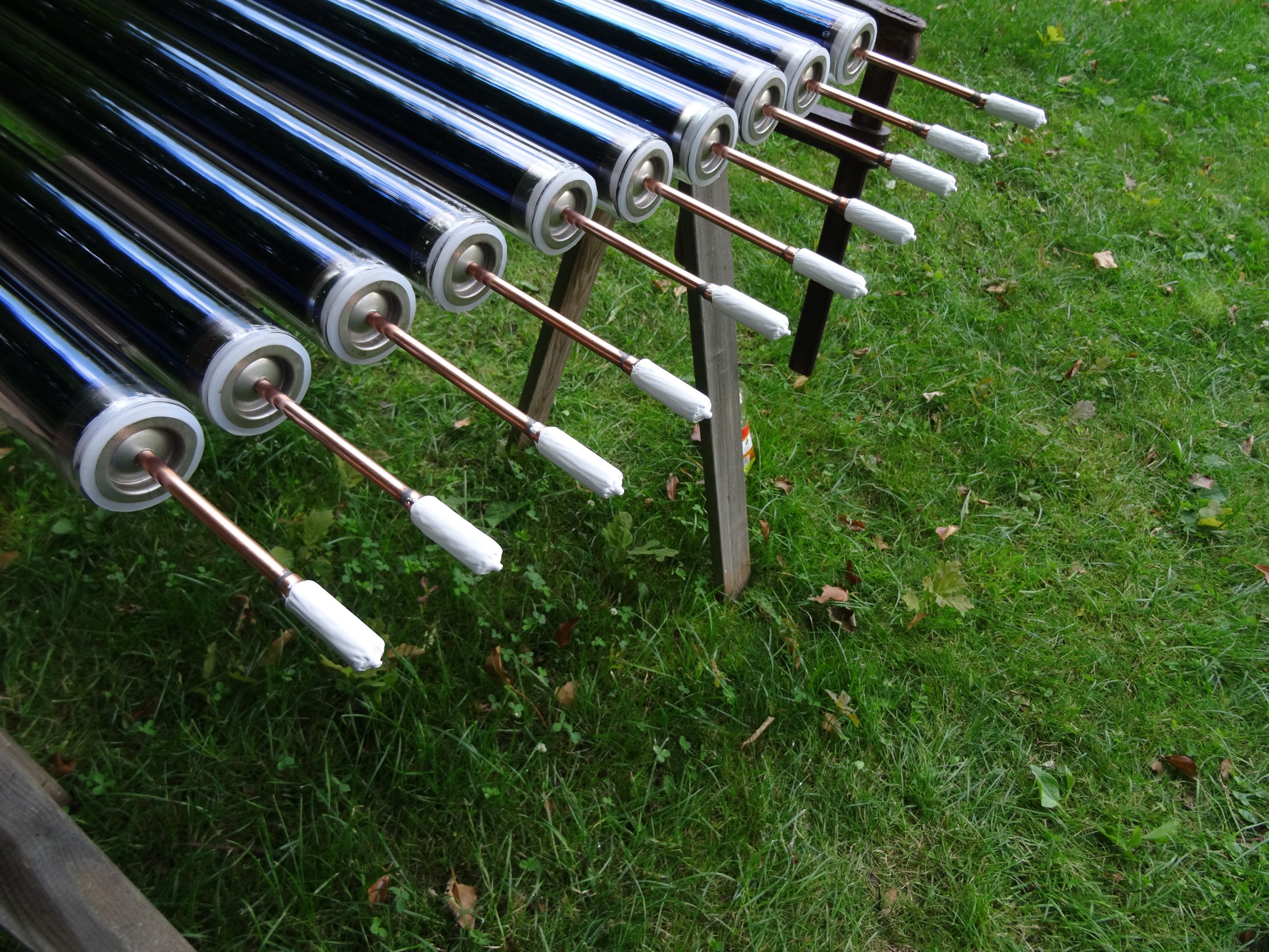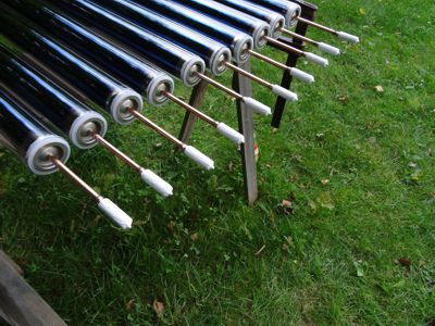 Mit Wärmeleitpaste fertig zur Montage. Auf den Glasrohrenden wurde etwas Spülmittel aufgetragen, damit sie besser in die Sammlerdichtungen gleiten. |