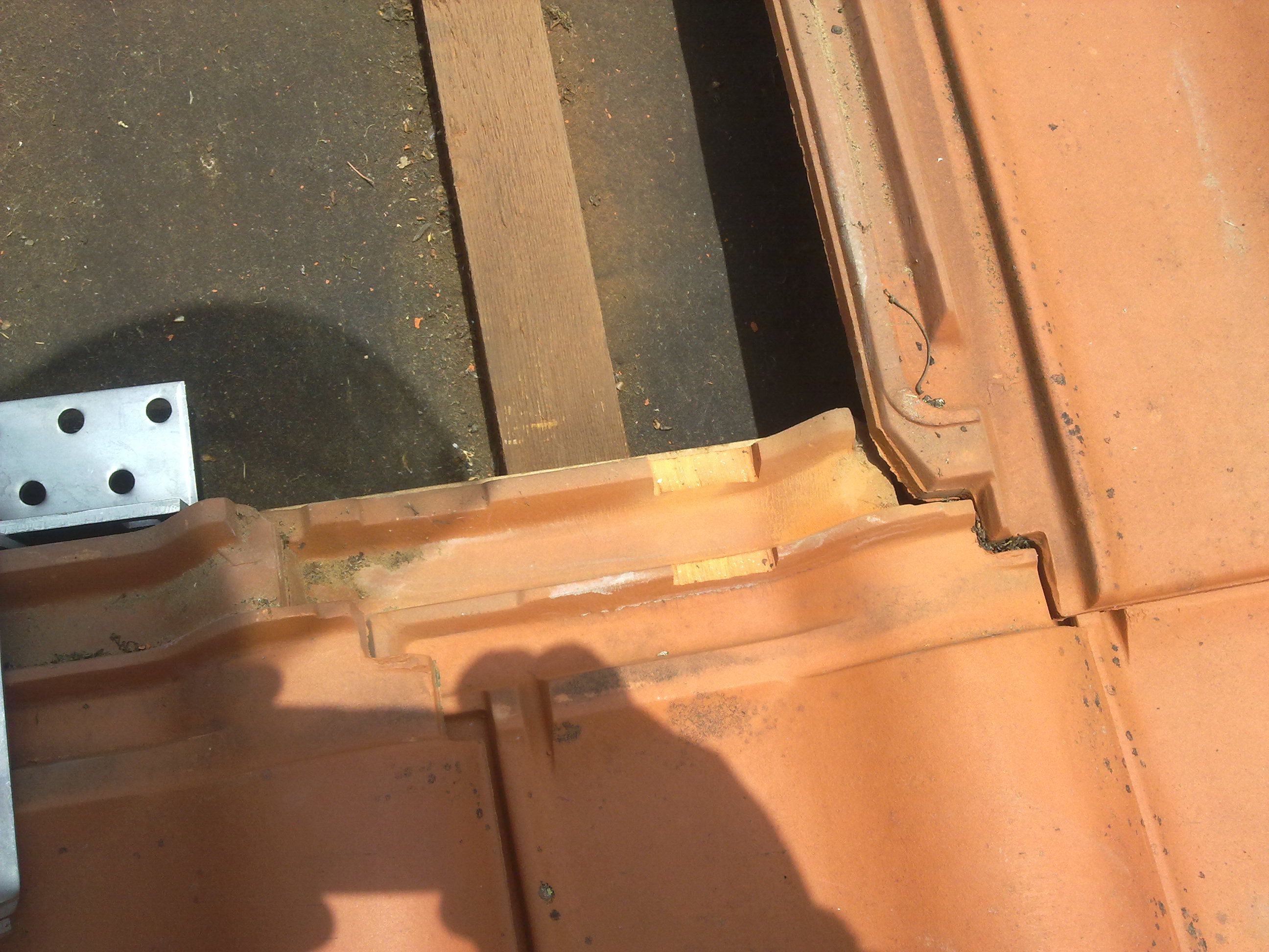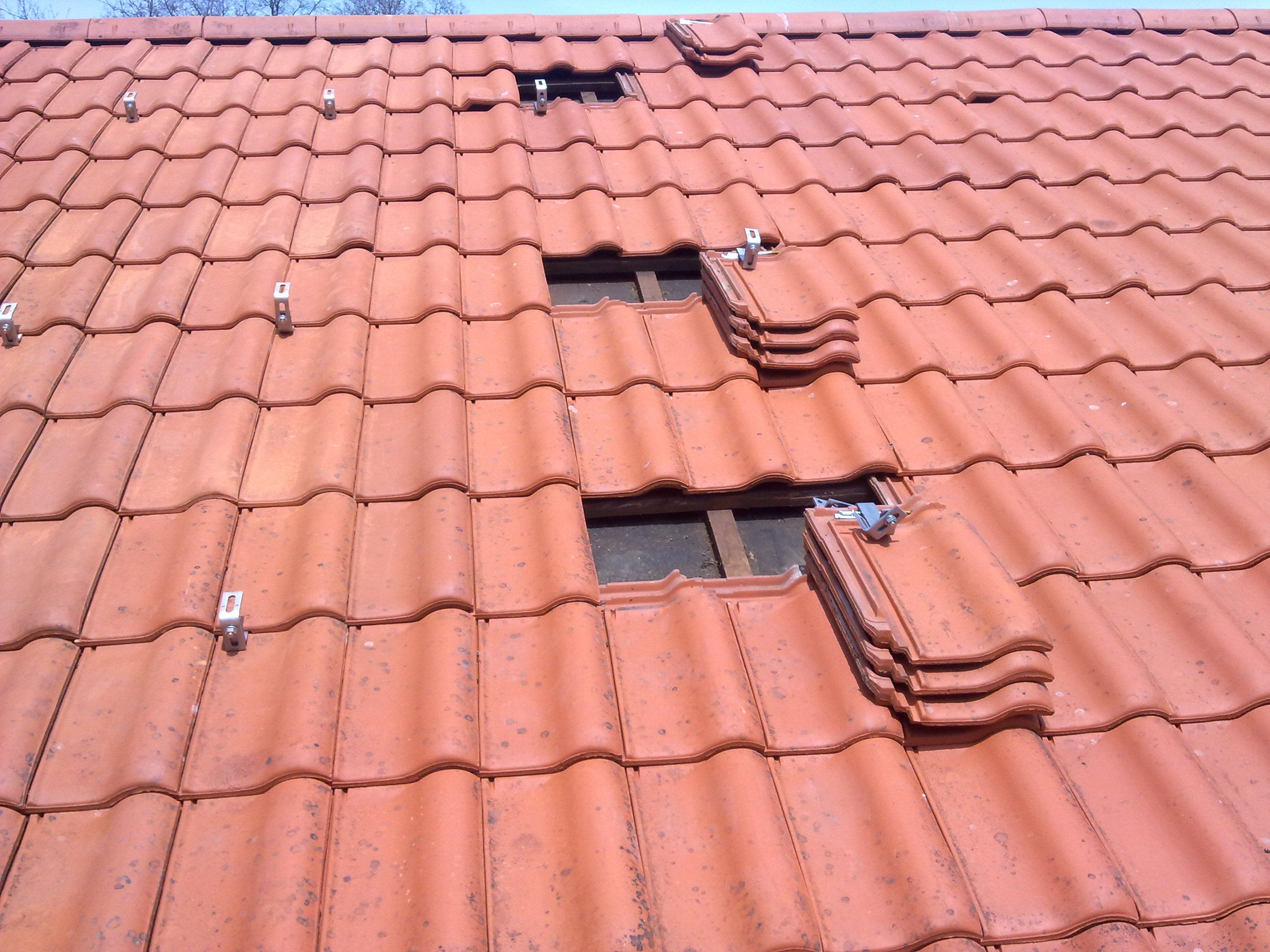 Dachziegel mit Diamantscheibe ausschneiden. |